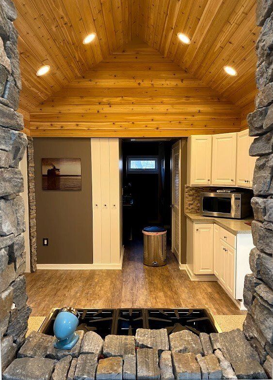 This kitchen opening creates a larger feel to the kitchen and dining area.
