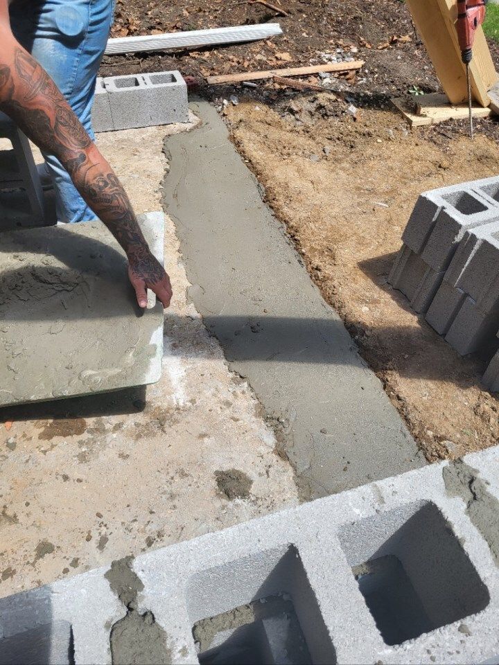 Block and brick are completed. Now its time for the concrete cap, and steps.