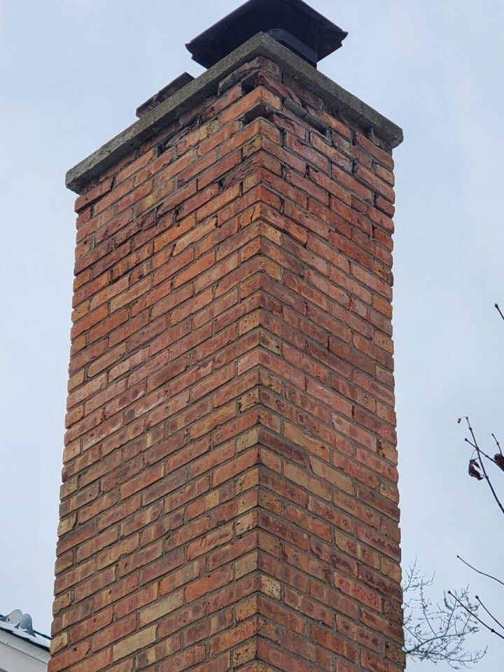Even what appears to be minor damage to a chimney can lead to major problems down the line! This chimney needed the top few feet rebuilt and a new concrete cap poured on top to shed water away from the chimney and the brick.