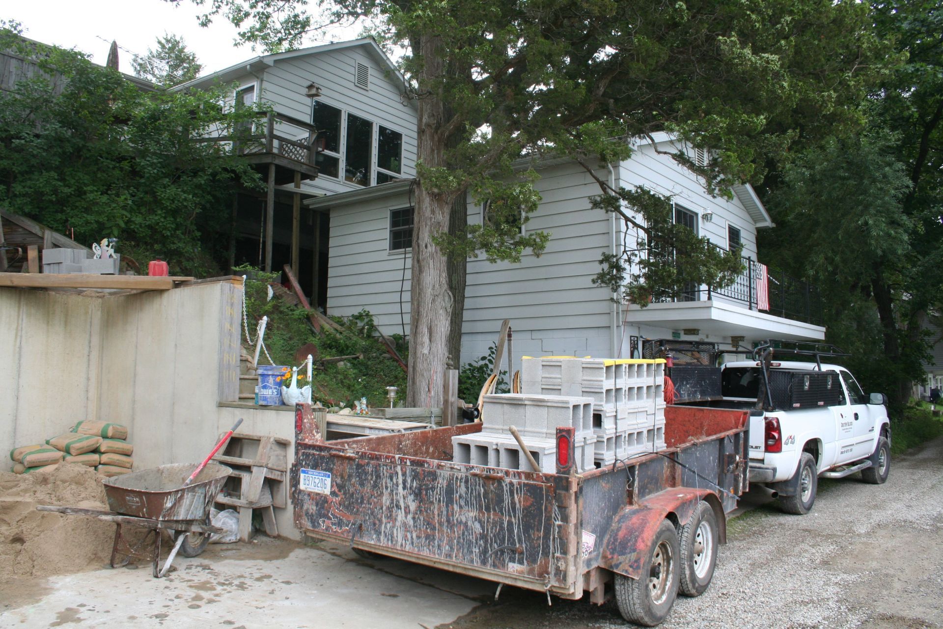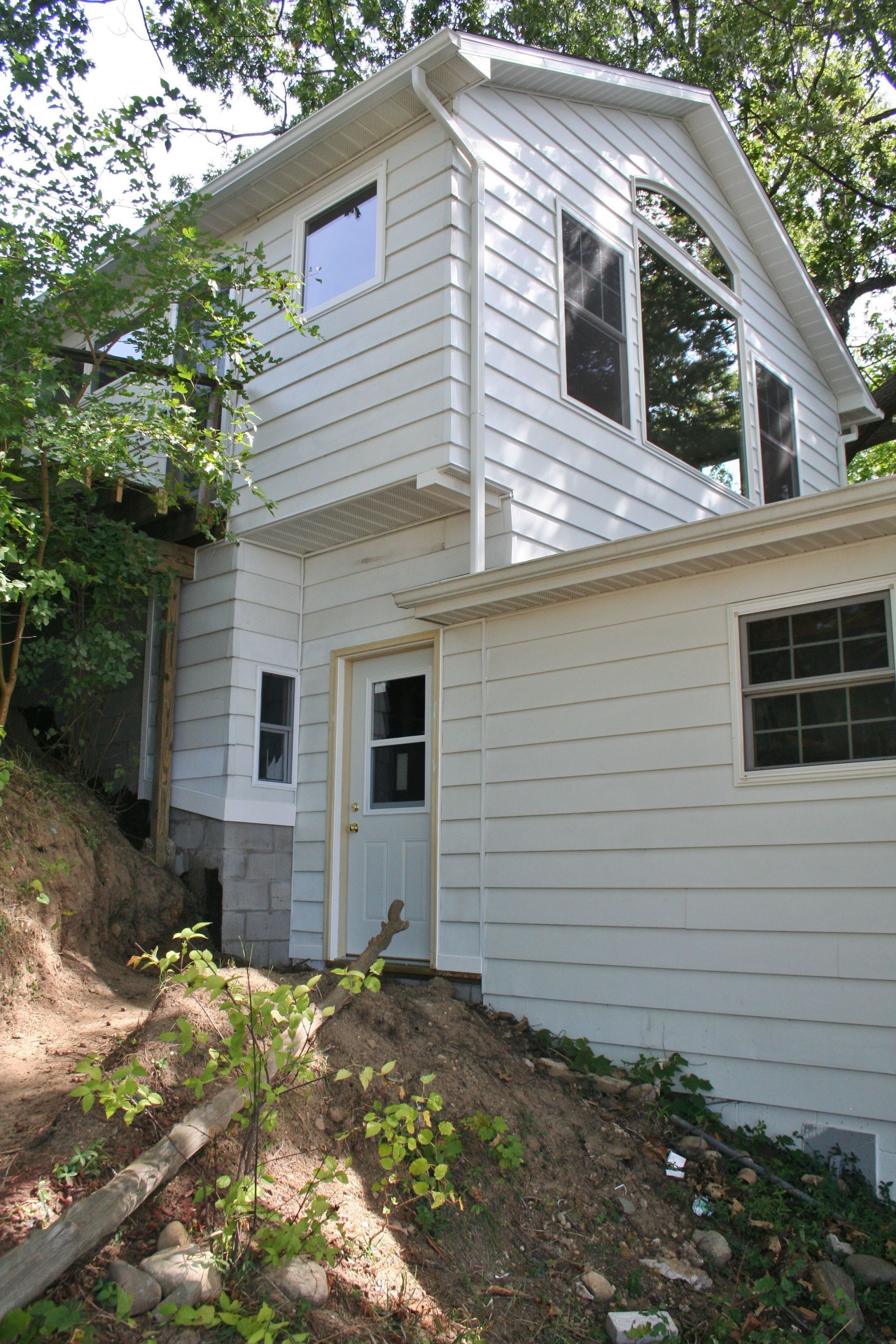 New foundation being put in place to connect a lake home that sits above a detached garage.