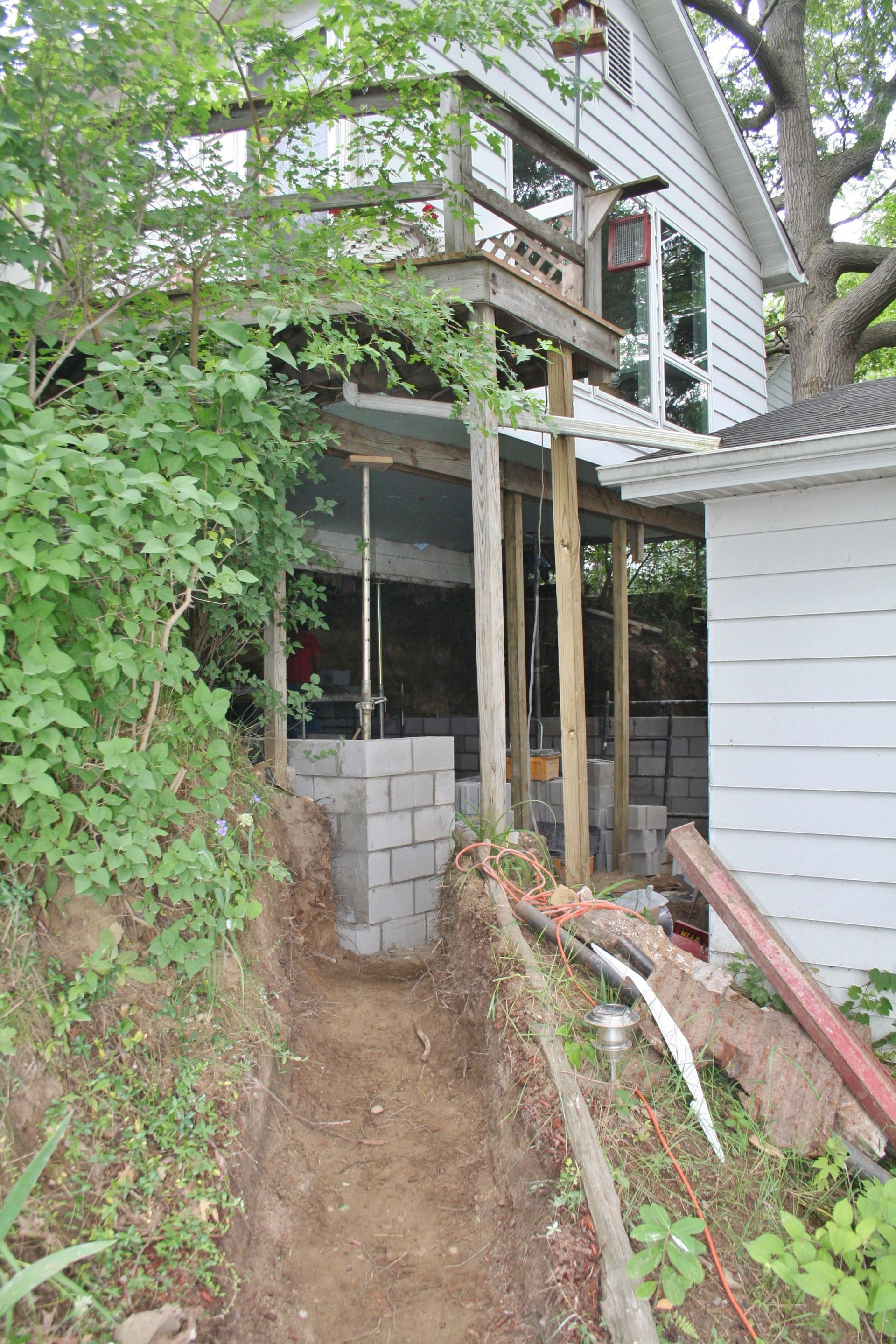 The new foundation will start under the existing home and connect all the way to the garage.