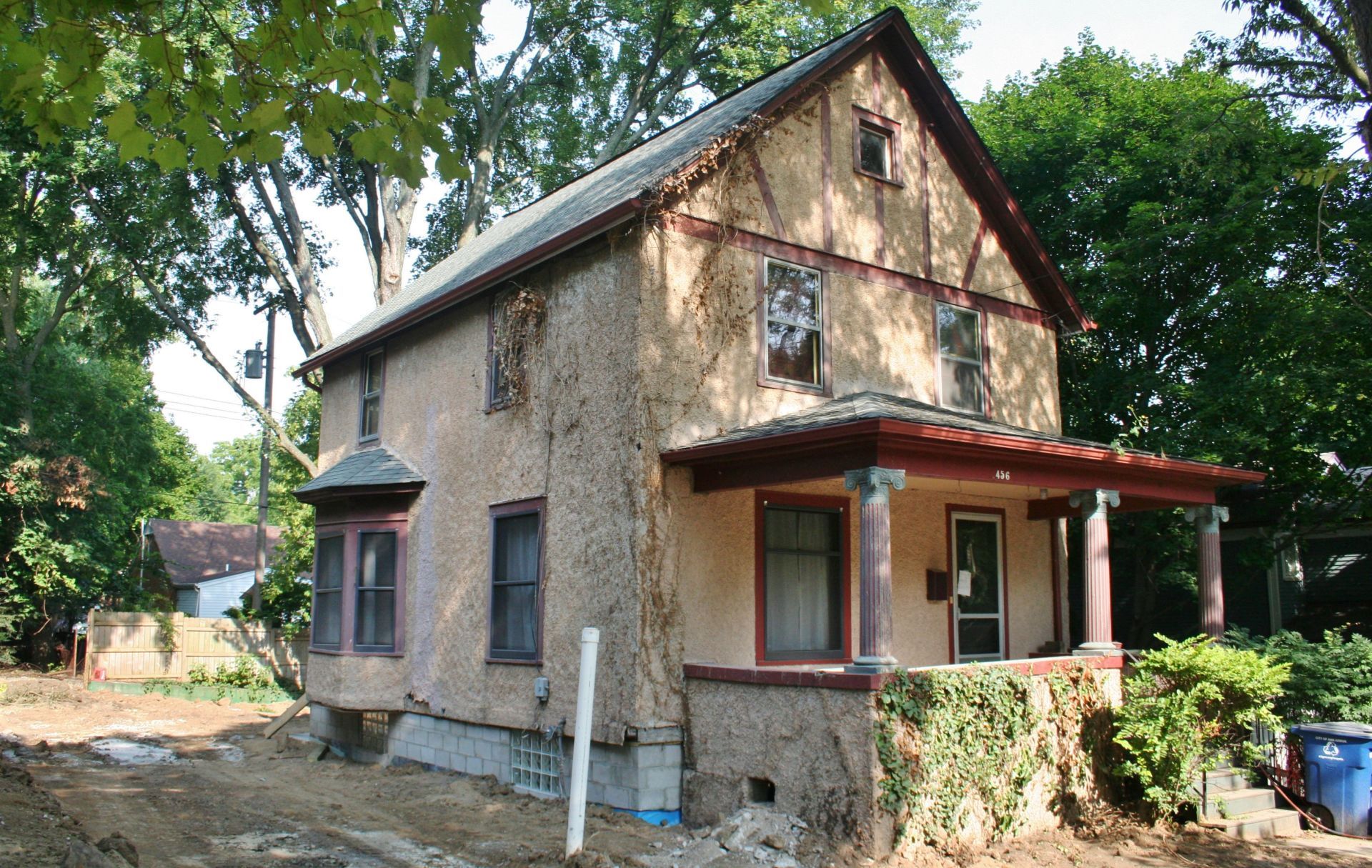 The opposite side of the house shows how the new foundation fits nicely with an existing door.