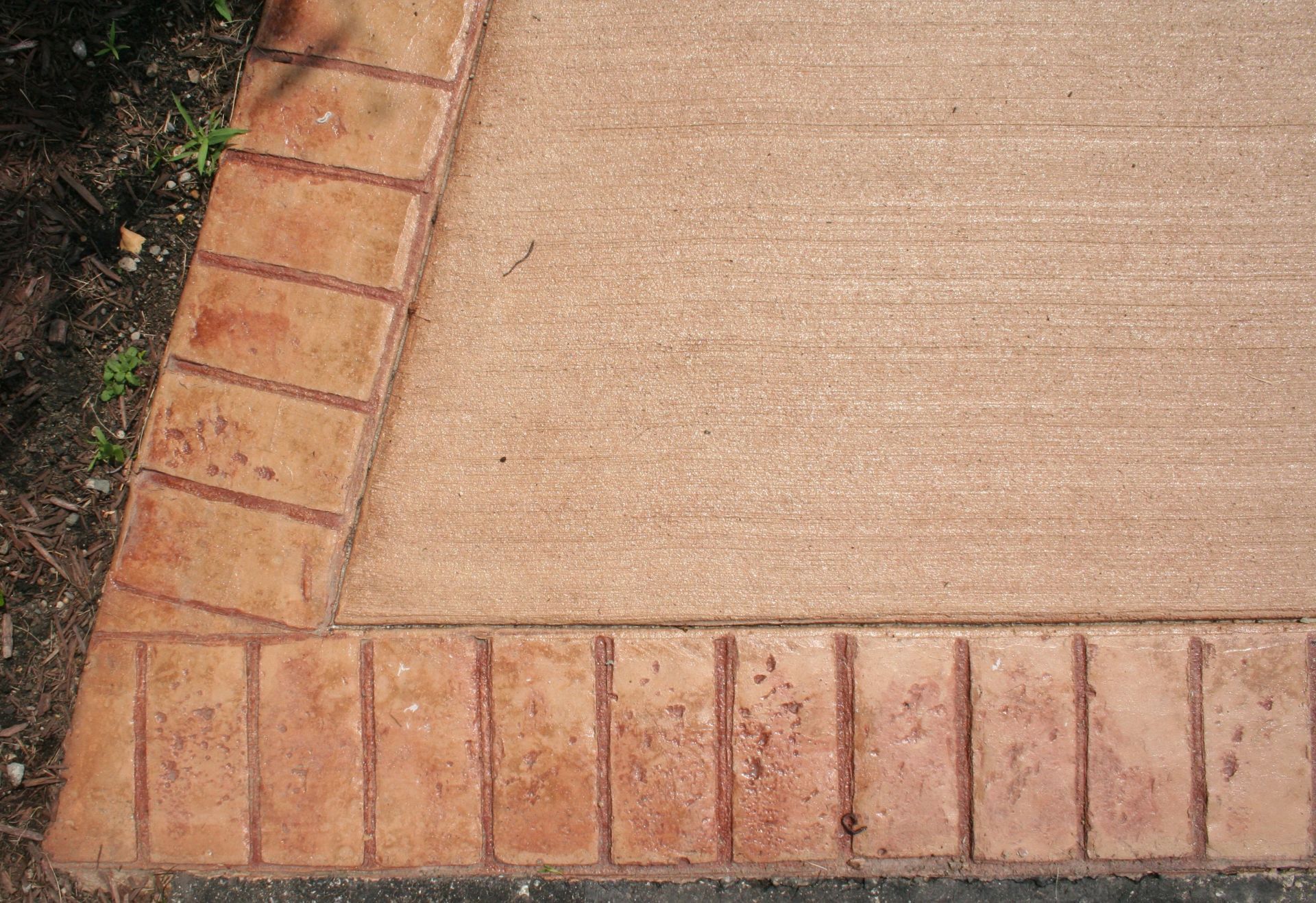 Poured concrete walkway with a stamped brick border.