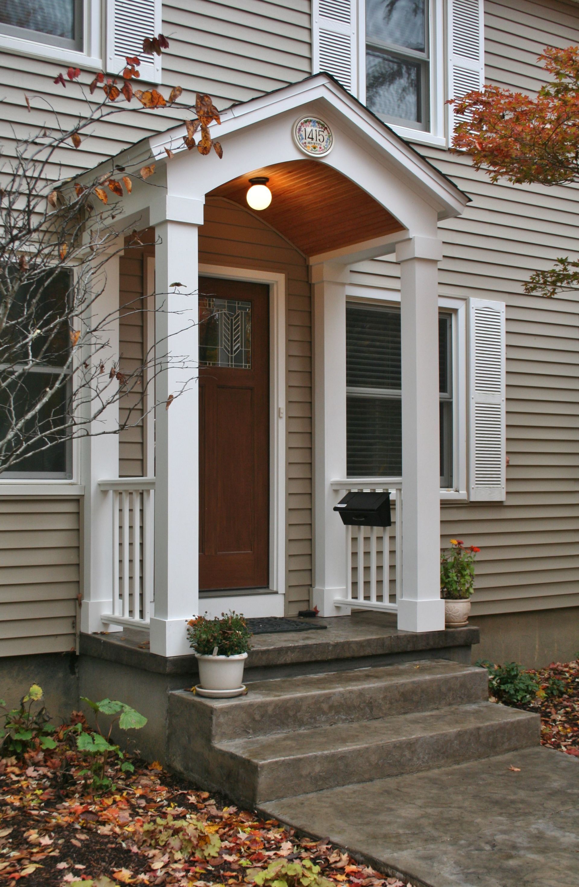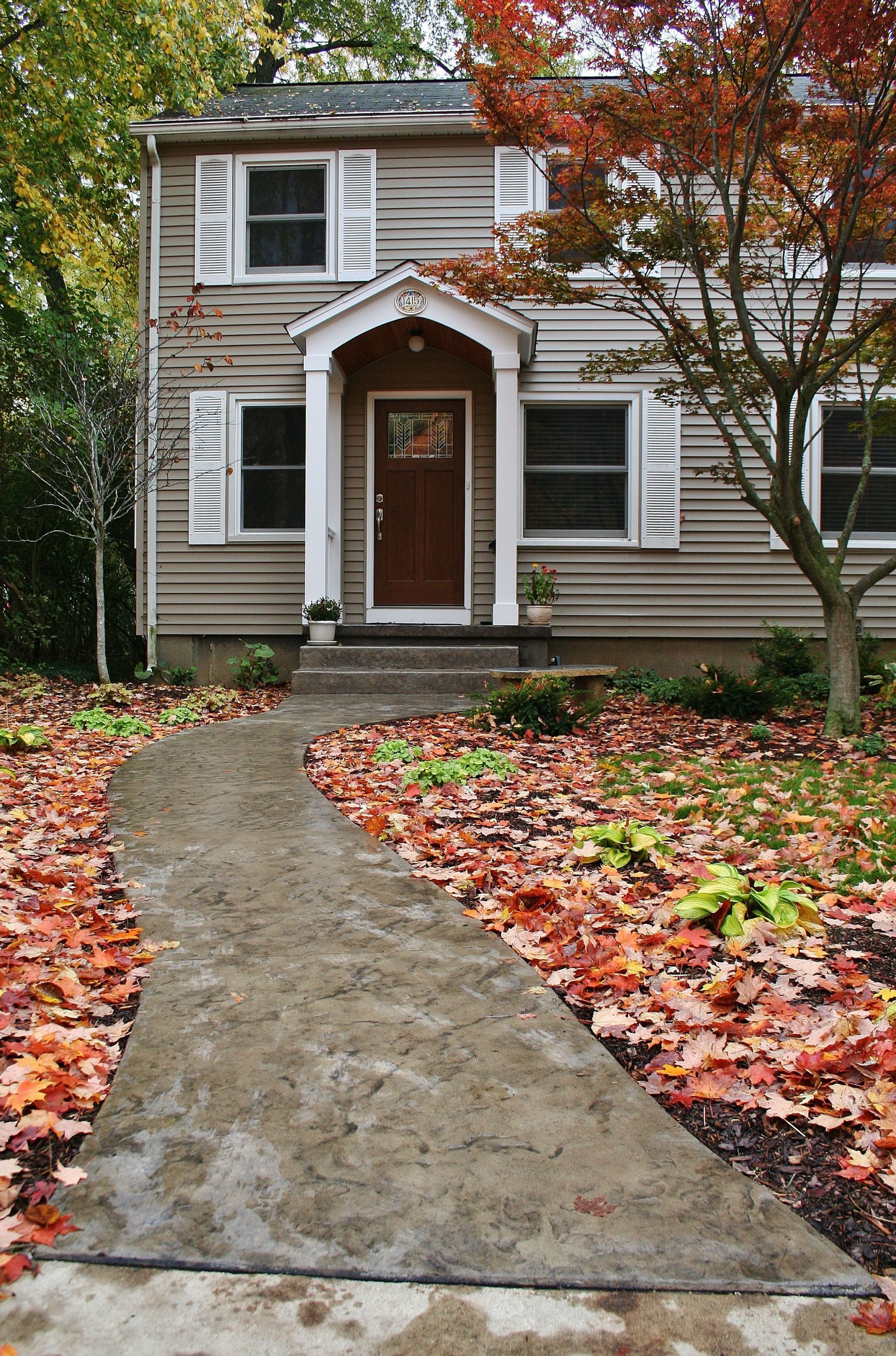 A look at the new poured concrete front porch and stamped concrete walkway.