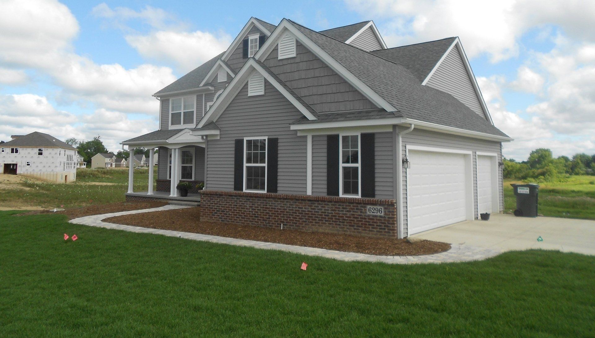 This newly built home features a paver walkway and a stamped concrete back patio.