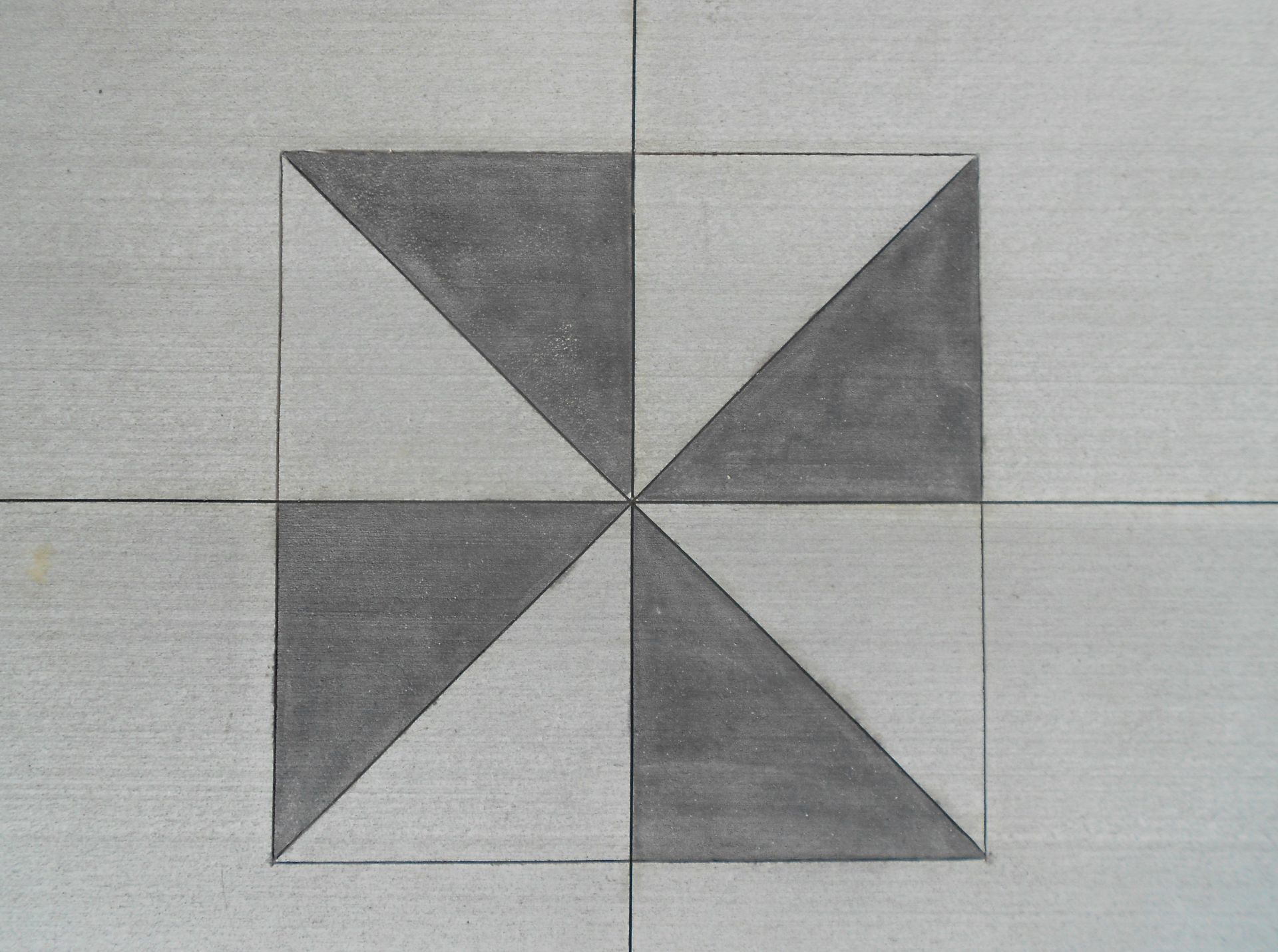 A stained boarder matches the unique symbol in the center of the patio.