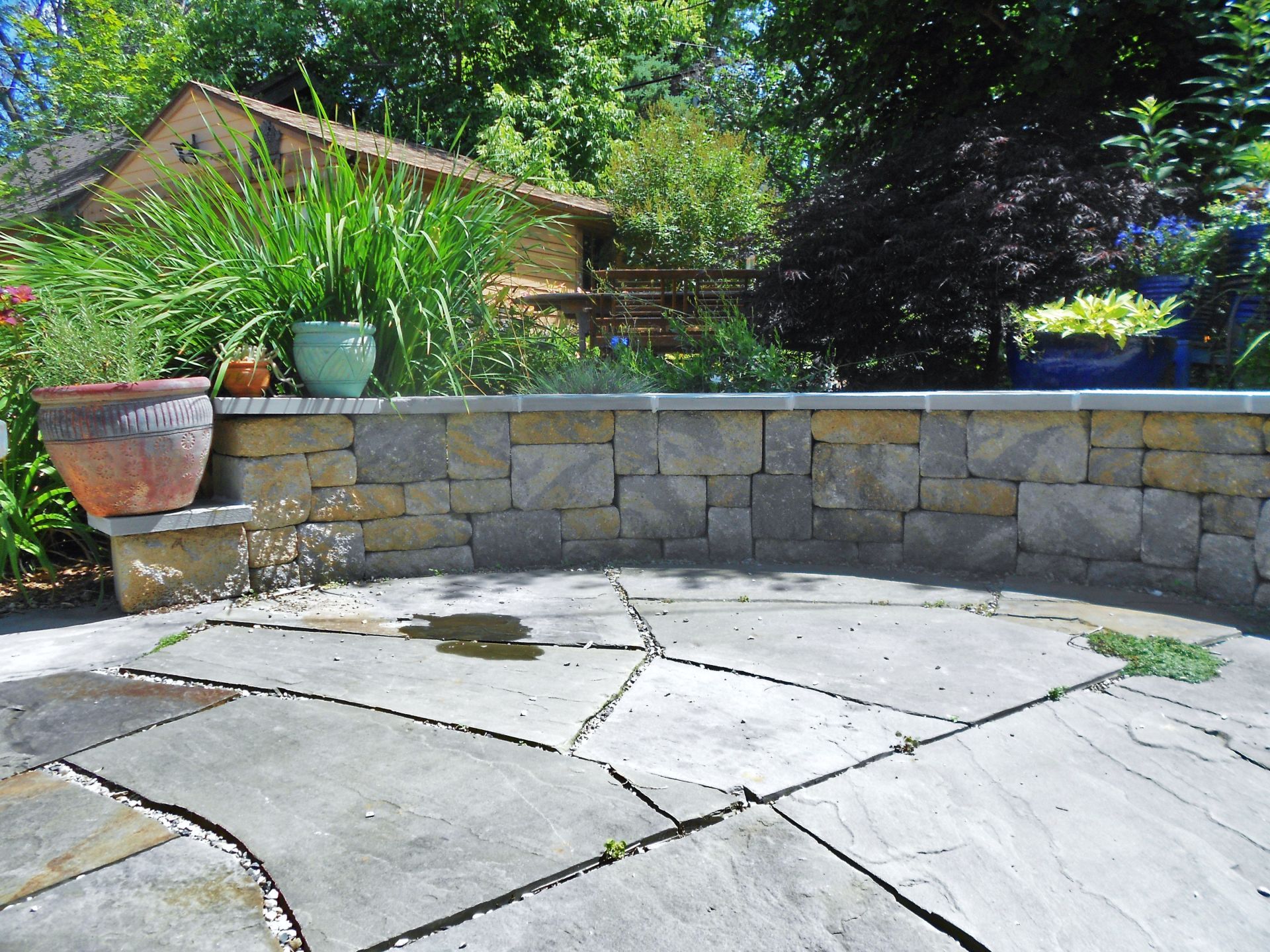 The caps on the top of the retaining wall had to be repaired due to wear and tear.